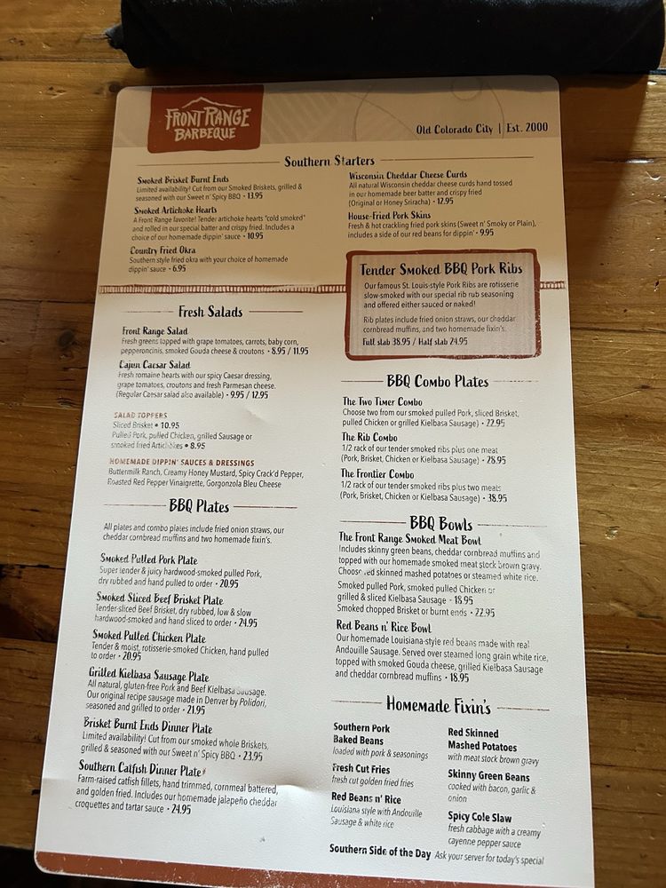 Founded in the heart of Colorado Springs, Front Range Barbeque is a hidden gem that offers a unique fusion of Cajun/Creole, American, and Barbeque cuisines. Located at 2330 W Colorado Ave, this family-owned restaurant boasts a plethora of amenities, including takeout, delivery, vegan and vegetarian options, outdoor seating, and even free Wi-Fi. Whether you're looking for a casual meal or a place to host a special event, Front Range Barbeque has you covered with their catering services and private dining options.